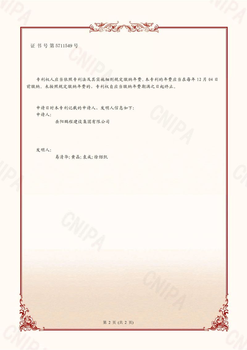 一種墻體抹灰施工設備-發(fā)明專利證書(易清華、黃晶、袁成、徐紹凱)_00